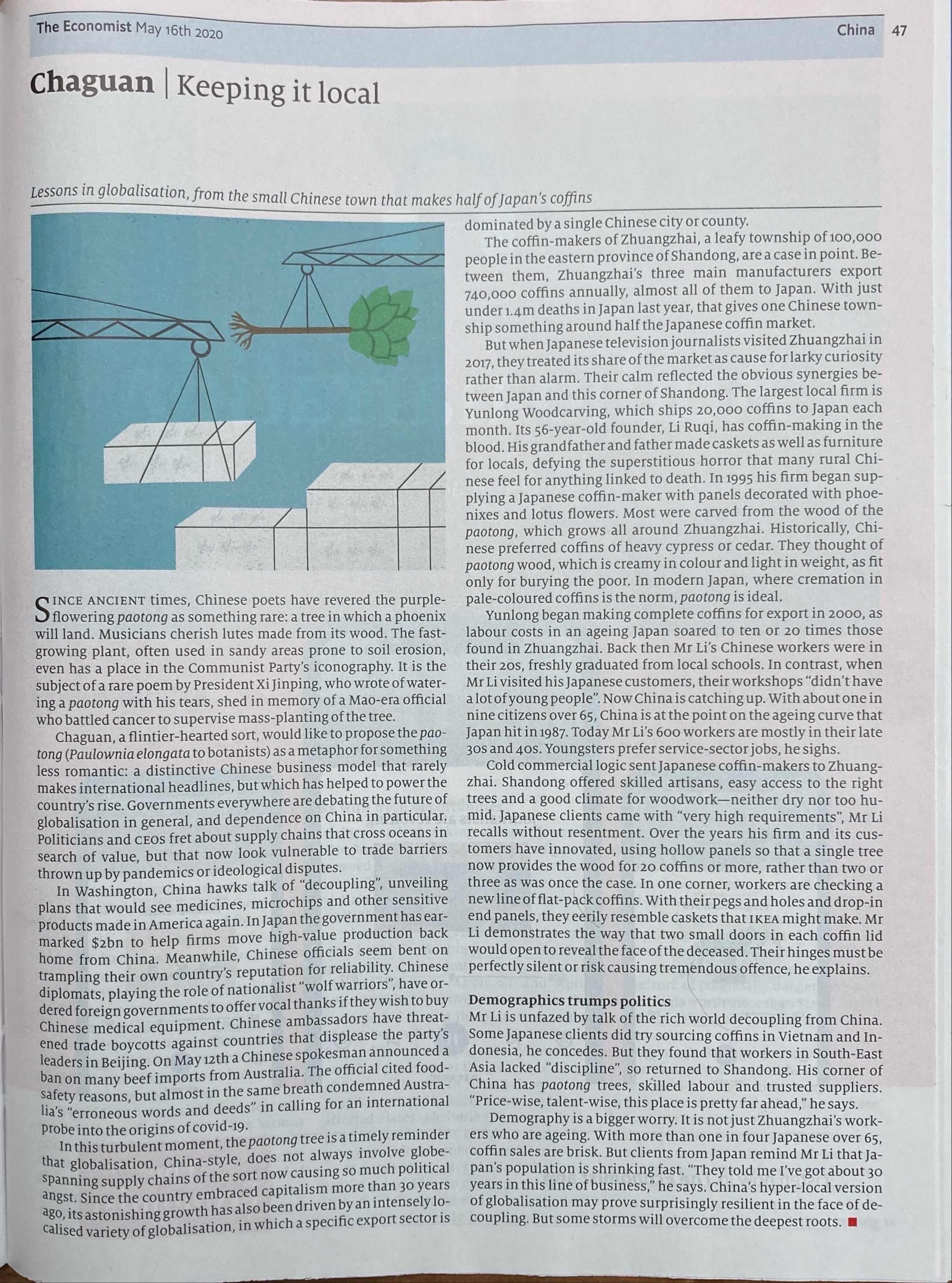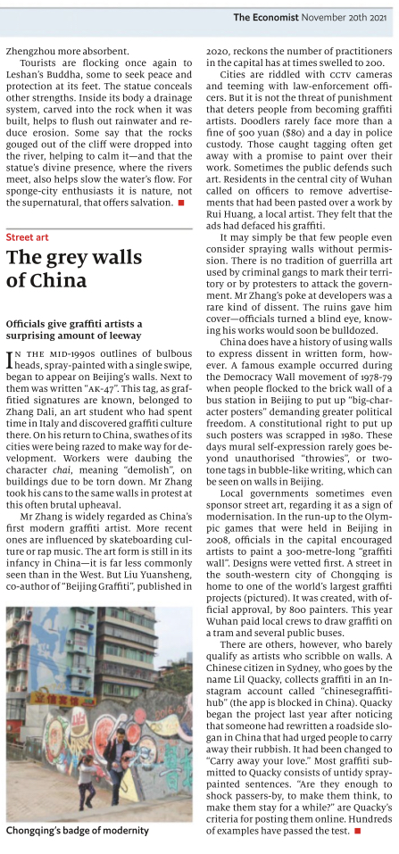 I think The Economist is a great source of ideas for major projects. Here are some stories I’ve spotted. I’m not suggesting you do one of these stories; rather that they are a good indication of the sort of major project ideas that I think could work and to show that they pop up in The Economist all the time.